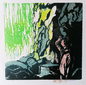 1997houtsnede op zilverkarton